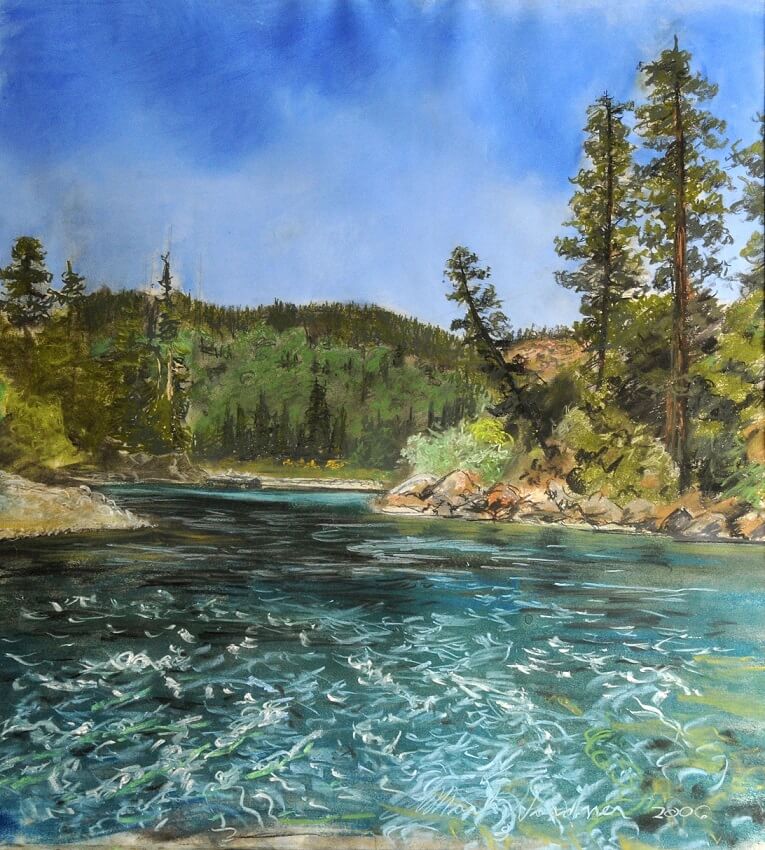 Port Orford is the most recent addition to my Pacific Northwest gallery. I completed this pastel while experiencing forty-mile an hour winds. That day, I walked out onto an island near Port Orford, Oregon, to get to this vantage point. It was a little dicey because I had to navigate a very thin ridge to get into position. However, once out there, I found a cove that protected me from the wind.